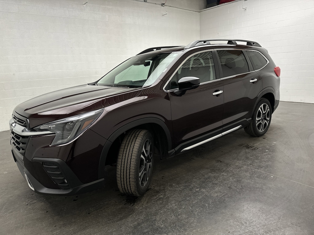 We have on our lot a FAMILY-READY 2025 Subaru Ascent Touring SUV - It's finished in Dark Mahogany Pearl, with a Java Brown perforated Nappa leather interior. It currently has JUST 3,940 miles, is powered by a turbocharged 2.4L Intercooled Turbo H-4 engine running on gasoline, paired with an 8-Speed CVT with overdrive, and features Subaru's Symmetrical All-Wheel Drive. It delivers an EPA-estimated 19 MPG city and 25 MPG highway.