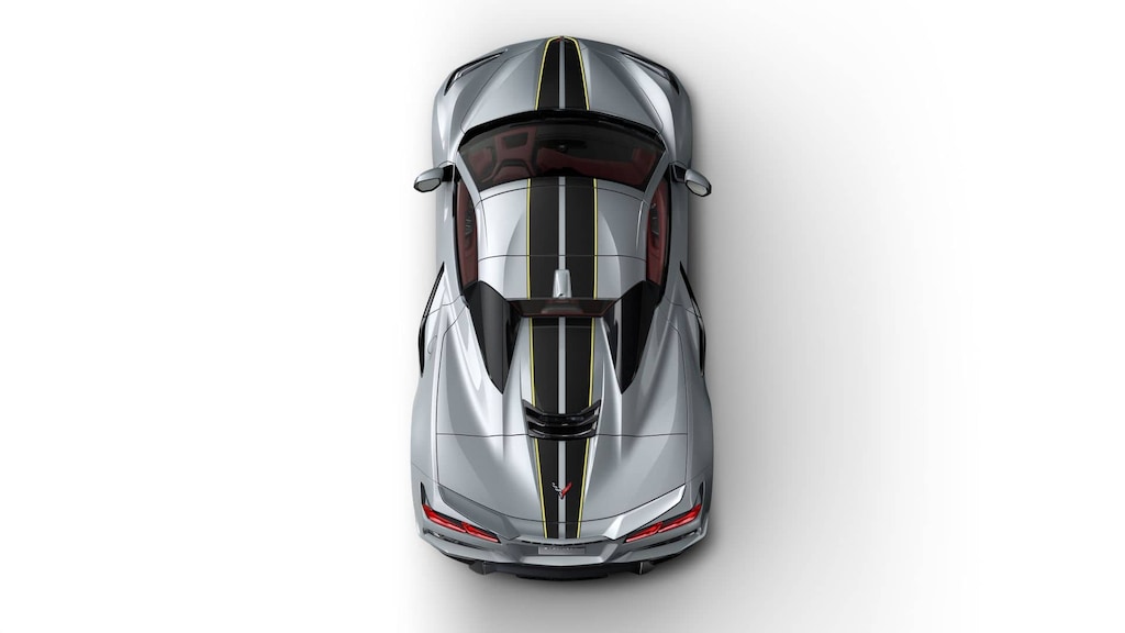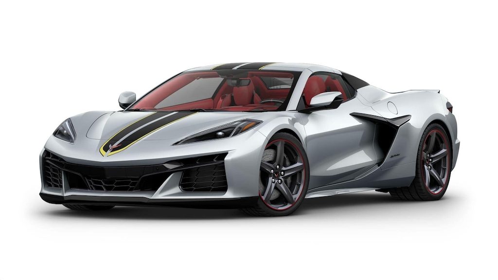 The exterior is equally captivating, enhanced by visible carbon fiber wheels with a red stripe, carbon ceramic brakes with Dark Gray calipers, and striking Carbon Flash with Yellow accent dual racing stripes. A power retractable hardtop transforms the Z06 from coupe to open-air supercar in seconds, while the carbon flash nacelles and body-color roof maintain its aerodynamic edge. The Front Lift Adjustable Height with memory system lets you glide over driveways or speed bumps effortlessly.