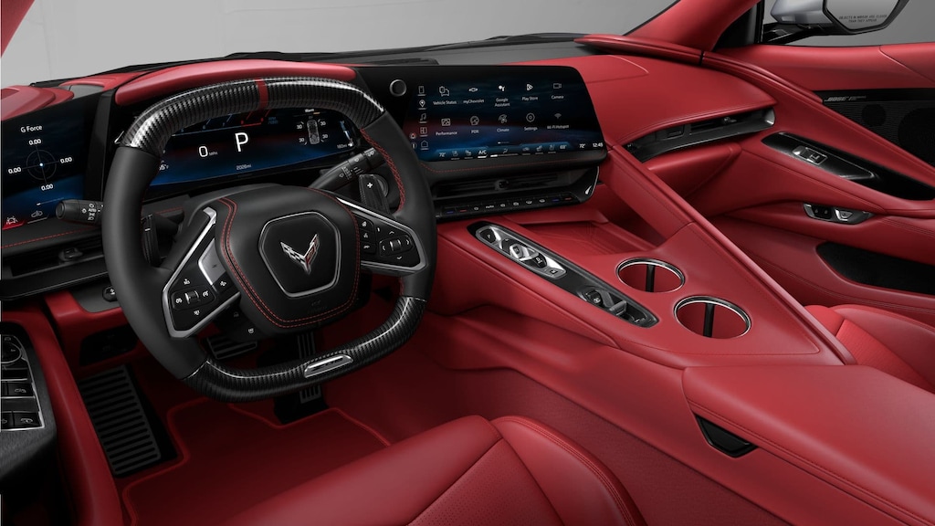The 3LZ package immerses you in performance luxury. Inside, the Adrenaline Red Dipped interior wraps you in full-grain Nappa leather, with GT2 bucket seats that are both ventilated and heated for year-round comfort. The carbon fiber steering wheel with shift paddles puts race-inspired control right at your fingertips, while the customizable 12.7-inch center touchscreen, 14-speaker Bose Performance Series audio, and integrated Google Built-In infotainment system create a high-tech, driver-focused cockpit. Youâll also find a Head-Up Display, wireless charging pad, dual-zone climate control, and a suede microfiber-wrapped upper interior package for added refinement.