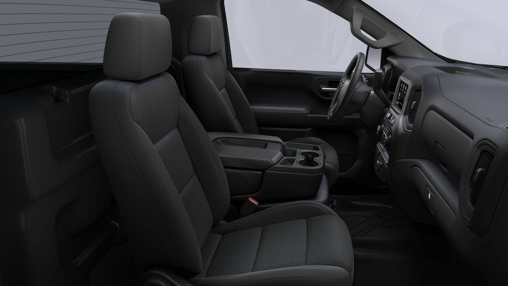 Step into the cab and you immediately feel the simplicity and purpose-built layout. The vinyl seating is tough enough for dirty jobsite days, while the split bench with underseat storage keeps your gear organized and close at hand. Push button start gets you moving quickly, and the 7-inch Chevrolet Infotainment 3 screen brings modern convenience with wireless Apple CarPlay and Android Auto, Bluetooth audio streaming, voice command passthrough, and a clear driver information display. Remote keyless entry, power windows, and power door locks make daily use easier, especially when juggling equipment between stops.