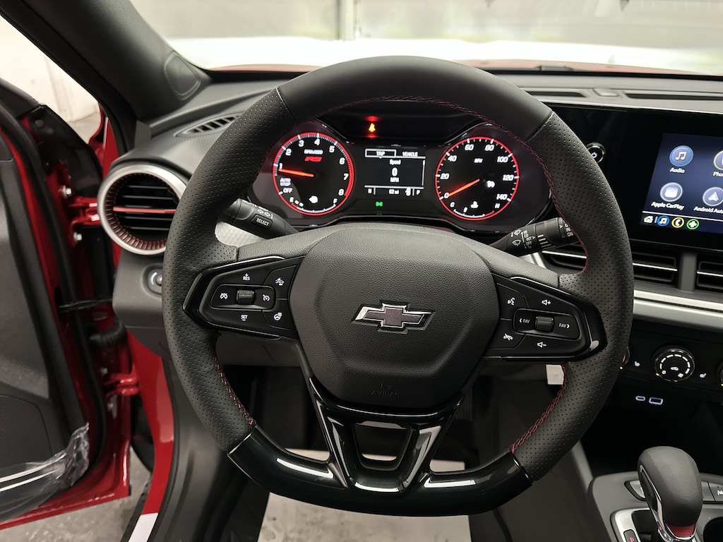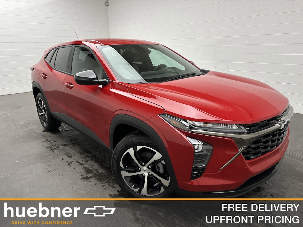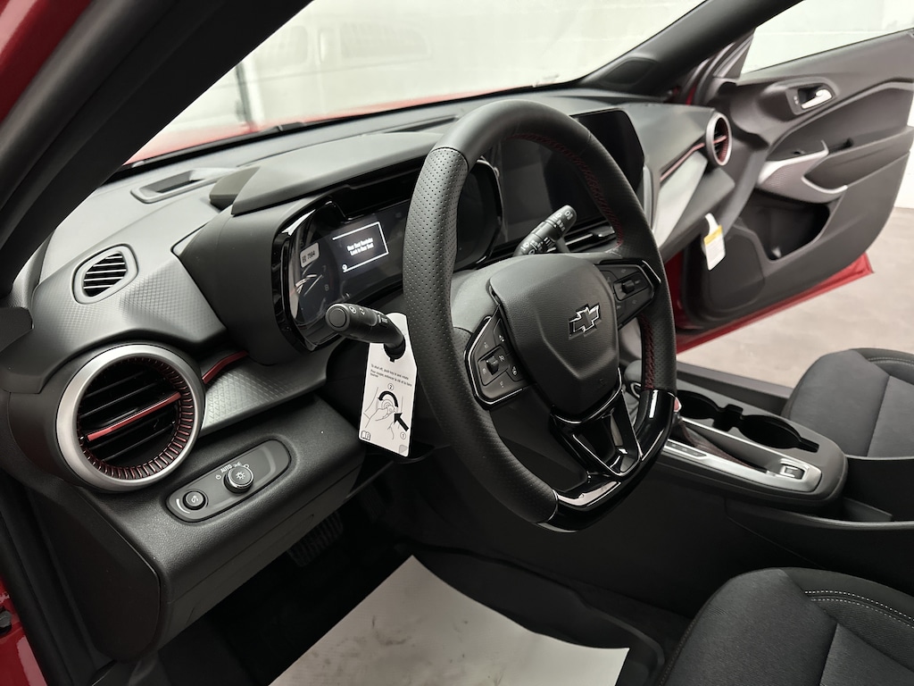 This is a brand new, 2026 Chevrolet Trax 1RS SUV - itâs finished in Apex Red, with a Jet Black/Gray interior with bold red accents.