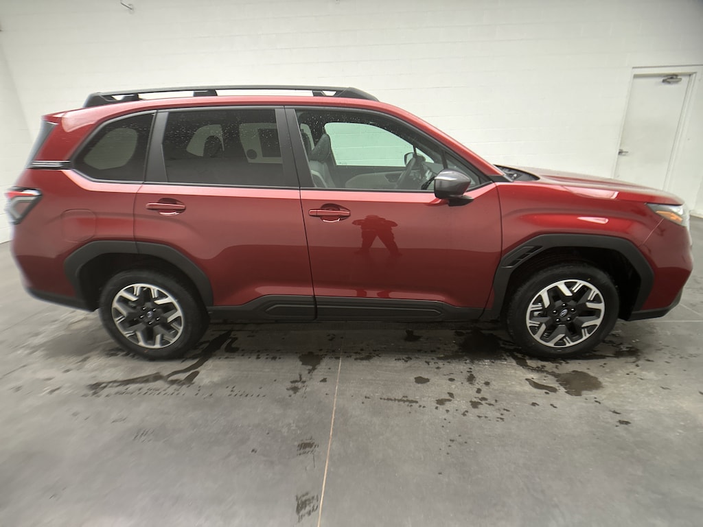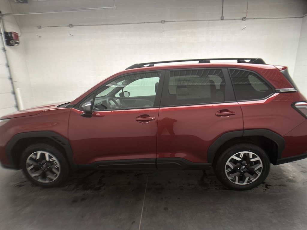This is a brand new, 2026 Subaru Forester Premium SUV - itâs finished in Crimson Red Pearl, with a durable Cloth interior. The mileage is currently 5, and itâs powered by a 2.5L H-4 Cylinder engine running on Gasoline, paired with a smooth 8-Speed CVT and Subaruâs legendary Symmetrical All-Wheel Drive system. This vehicle includes the full factory warranty and is brand new.