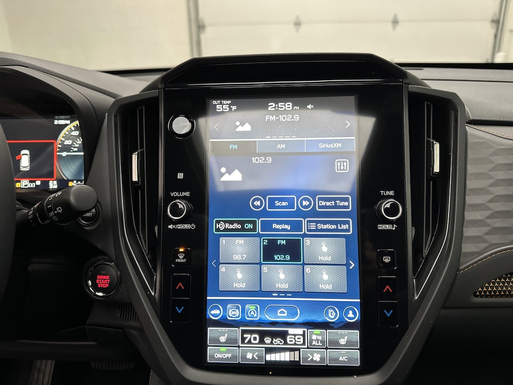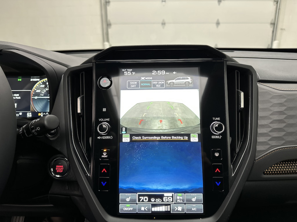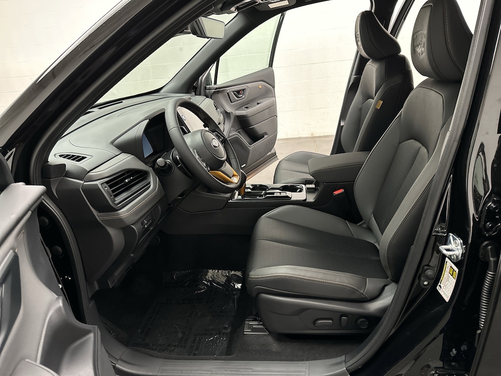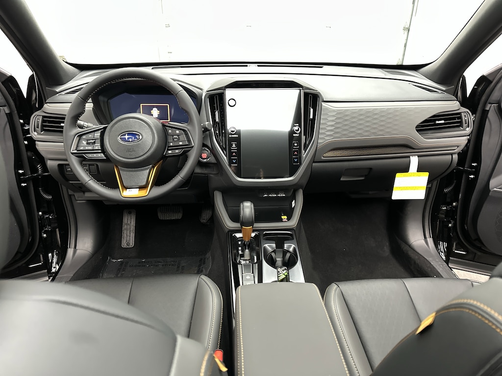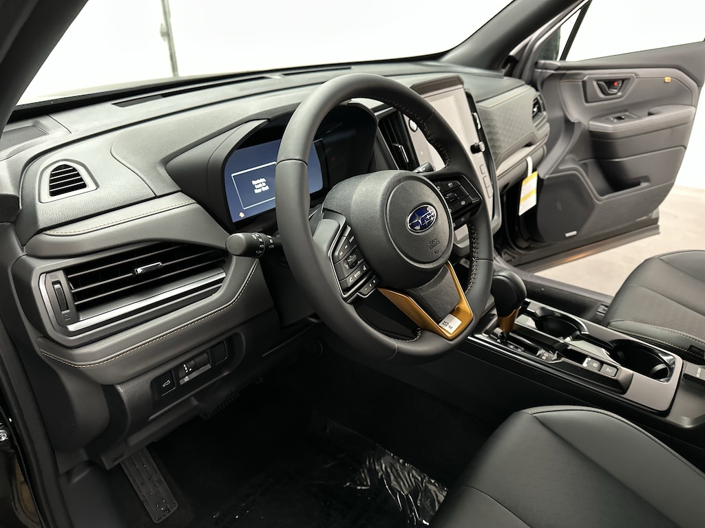 Inside, the Forester Wilderness balances durability with modern comfort. The premium StarTex seating is easy to clean after muddy adventures, while heated front seats and dual-zone automatic climate control keep you comfortable year-round. The massive 11.6-inch touchscreen with navigation, wireless Apple CarPlay and Android Auto, WiFi hotspot capability, and Harman Kardon premium audio system turn every drive into a connected, enjoyable experience. A power drivers seat with lumbar support, panoramic moonroof, power rear gate, and full LCD digital gauge cluster elevate the daily driving experience.