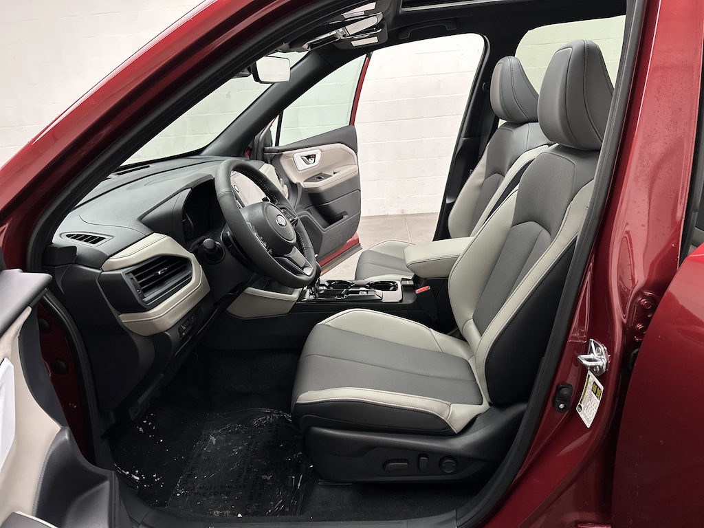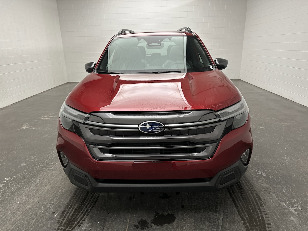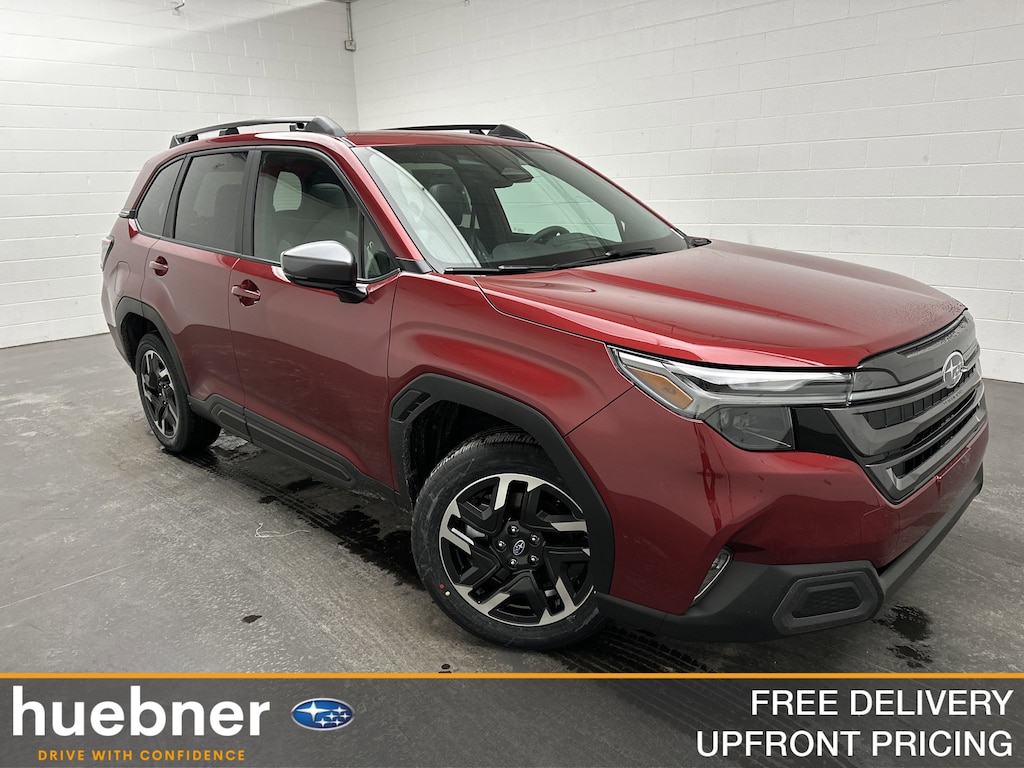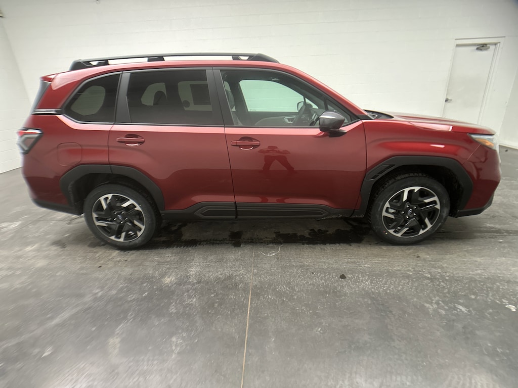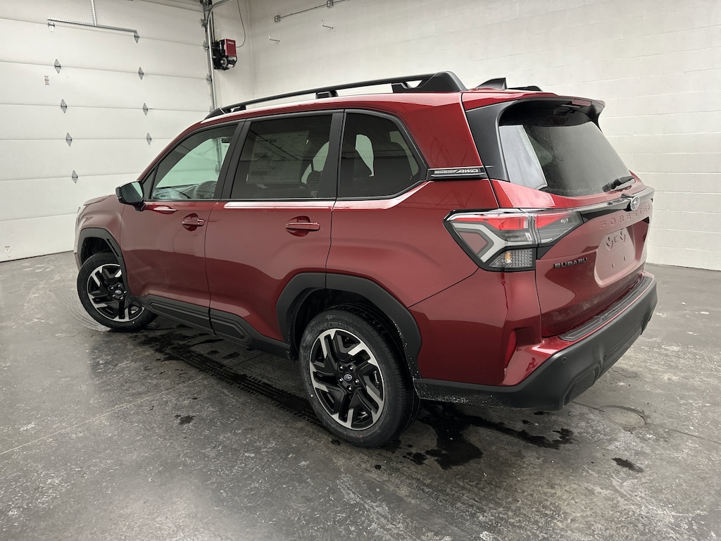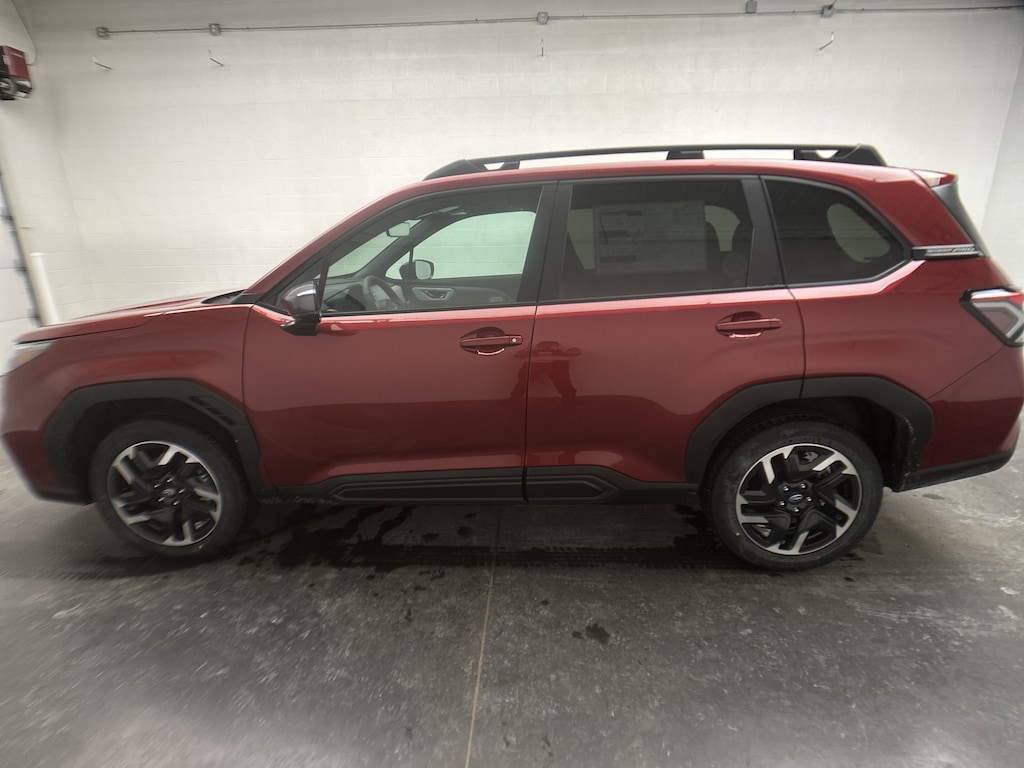 This is a brand new 2026 Subaru Forester Limited SUV that just arrived, finished in Crimson Red Pearl with a Black leather-trimmed interior. The mileage is currently just 5, making this an untitled, brand new vehicle that includes the full factory warranty for complete peace of mind from day one.