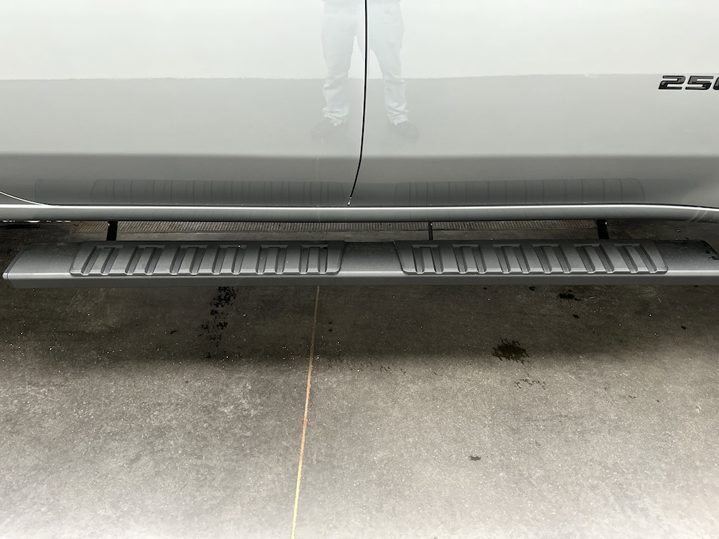 Outside, this truck looks as bold as it performs. Blacked-out badging, LED roof marker lamps, and machined aluminum wheels give it a commanding presence. Practical touches like the spray-on bedliner, LED cargo lighting, CornerStep bumper, and integrated bed power outlet make every job easier.