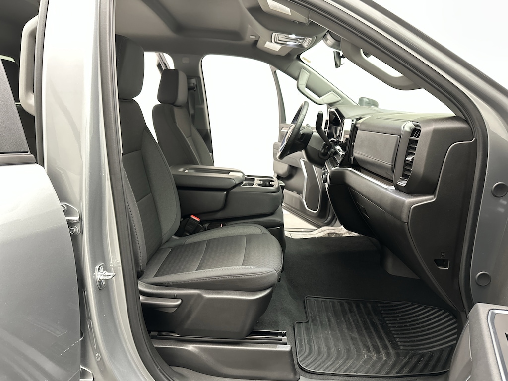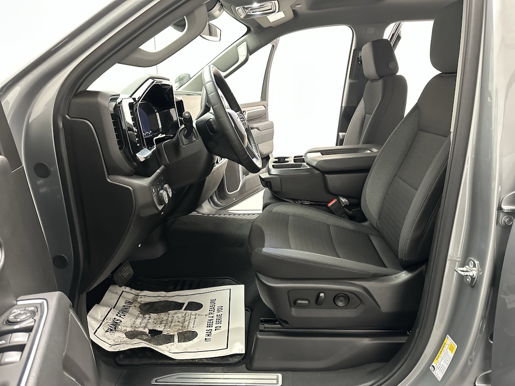 Outside, the Silverado's bold presence is matched by practical features. Chrome assist steps make climbing in and out easy, LED fog lamps improve visibility in poor conditions, and the Durabed pickup bed with LED cargo lighting, multiple tie-downs, and an EZ Lift tailgate is ready for everything from lumber to weekend projects. Power-adjustable heated trailering mirrors give you a clear view when towing, adding confidence every time you change lanes.
