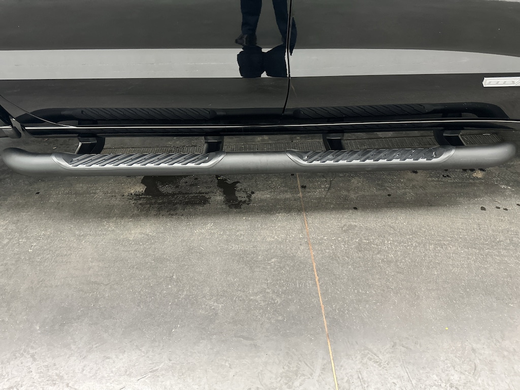 On the outside, the Elevation trim gives this Sierra a strong, aggressive look with 20-inch high-gloss black wheels, black tube steps, body-color bumpers, LED headlights and fog lamps, and deep-tinted glass.