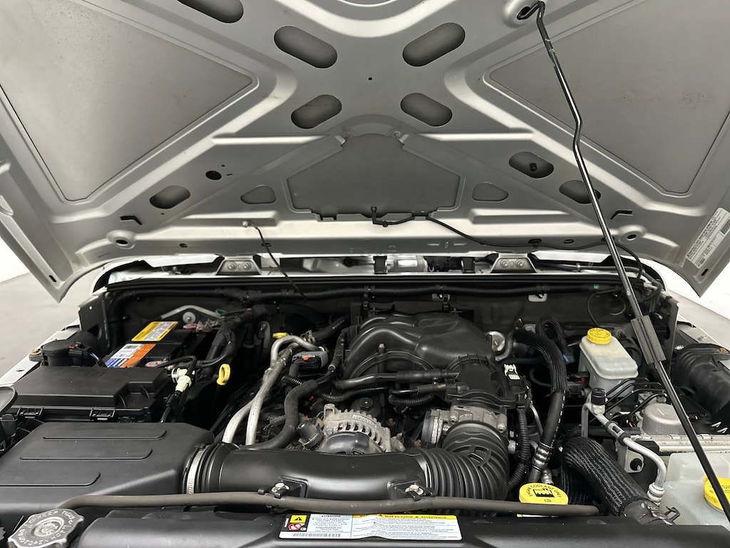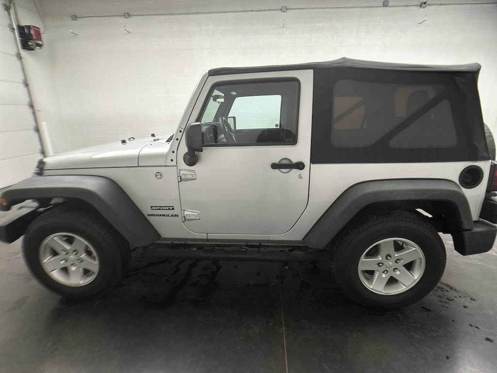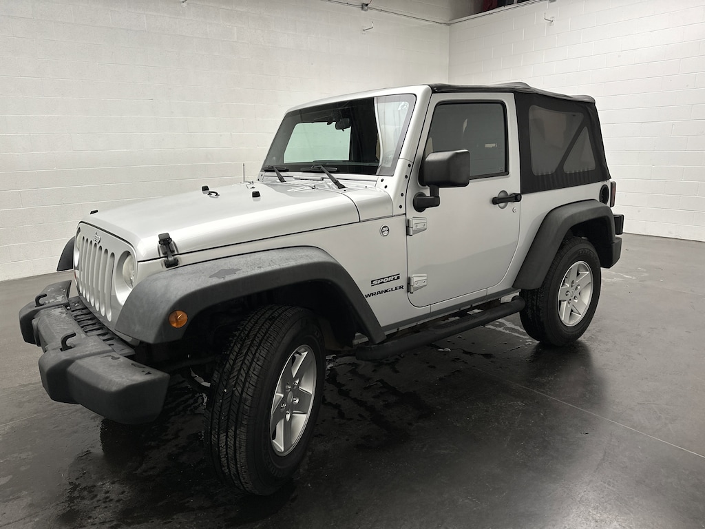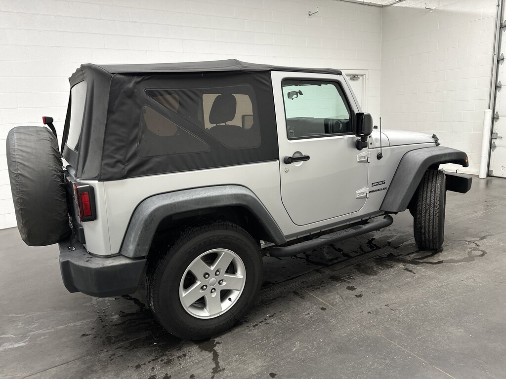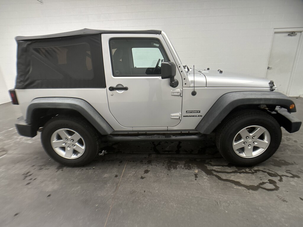 We have on our lot a 2012 Jeep Wrangler Sport SUV - it's finished in Bright Silver Metallic, with a Black Interior Cloth interior. This Wrangler currently has 97,385 miles and is powered by a proven 3.6L V6 gasoline engine paired with a 5-Speed Automatic transmission.