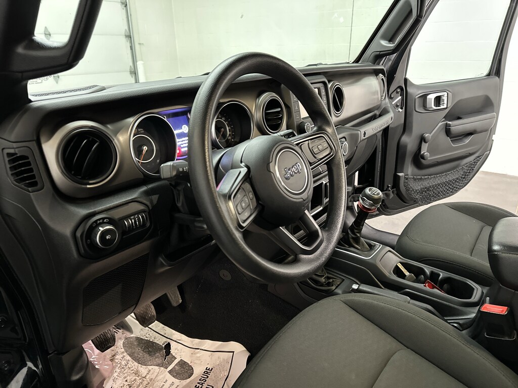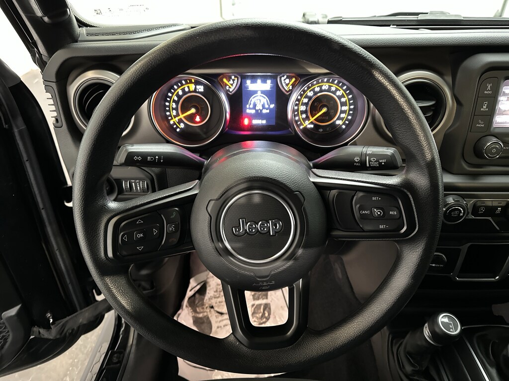 The Wrangler Sport is built for drivers who crave authenticity and hands-on driving, and this one delivers that classic Jeep experience the moment you climb in. Grabbing the manual shifter, firing up the V6, and feeling the solid, upright stance instantly connects you to the road or trail ahead. The Command-Trac part-time 4WD system, skid plates, tow hooks, and solid axles give you the confidence to head off pavement without hesitation, whether that means muddy back roads, snowy winter commutes, or a weekend trail run.