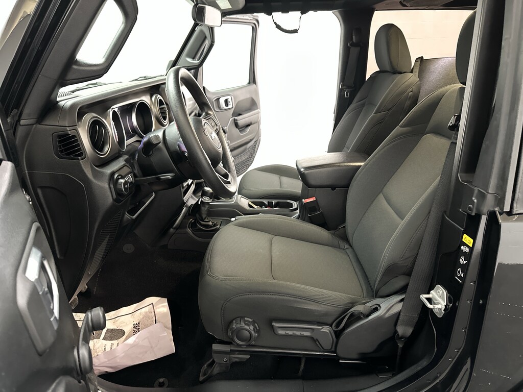The Black Cloth interior keeps things simple, durable, and easy to live with, while still offering thoughtful comfort touches. The driverâs seat includes manual lumbar support to keep you comfortable on longer drives, and air conditioning keeps the cabin cool after a day outdoors. Mopar all-weather floor mats are ready for muddy boots, sandy shoes, or snowy gear, making cleanup easy after your next adventure.