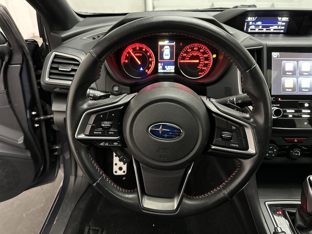 The Impreza Sport is designed for drivers who want a practical daily commuter with a little extra personality and capability. Slide into the driver seat and you immediately notice the sporty touches - the leather-wrapped steering wheel, supportive heated front seats, and the subtle carbon-fiber style trim that adds a modern edge to the cabin. On cold mornings, those heated seats warm up quickly, while the standard Subaru Symmetrical All-Wheel Drive system keeps you planted and confident whether the road is wet, snowy, or dry.