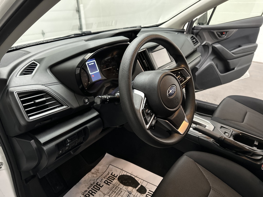 Inside, the cabin is practical, comfortable, and thoughtfully designed. The cloth seating is supportive and durable, ideal for everyday use, while the height-adjustable driver's seat makes it easy to find a comfortable driving position. Automatic climate control keeps the cabin comfortable no matter the season, and the Subaru STARLINK 6.5-inch multimedia system brings Apple CarPlay and Android Auto right to your fingertips, making it easy to access navigation, music, and calls without distraction.