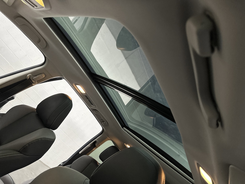 The panoramic power moonroof stretches overhead, flooding the cabin with natural light, while the 20-inch black-finish alloy wheels, black exterior accents, and rear spoiler give it a bold, athletic stance that stands out in the school pickup line.