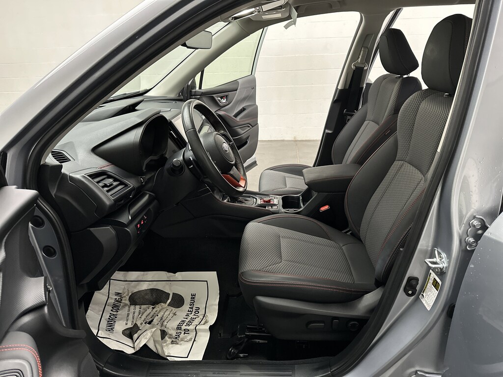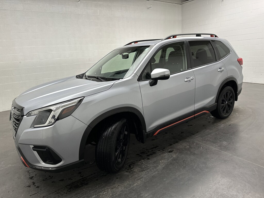 We've just taken in a 2024 Subaru Forester Sport SUV - it's finished in Ice Silver Metallic, with a Gray Sport Cloth interior with bold orange stitching. It currently has JUST 17,445 miles and is powered by a 2.5L 4-cylinder gasoline engine paired with a smooth 7-Speed CVT and Subaru's legendary Symmetrical All-Wheel Drive. This 1-owner Forester comes with 0 accidents on its history, is in Very Good condition, and still carries remaining factory bumper-to-bumper warranty for added peace of mind.