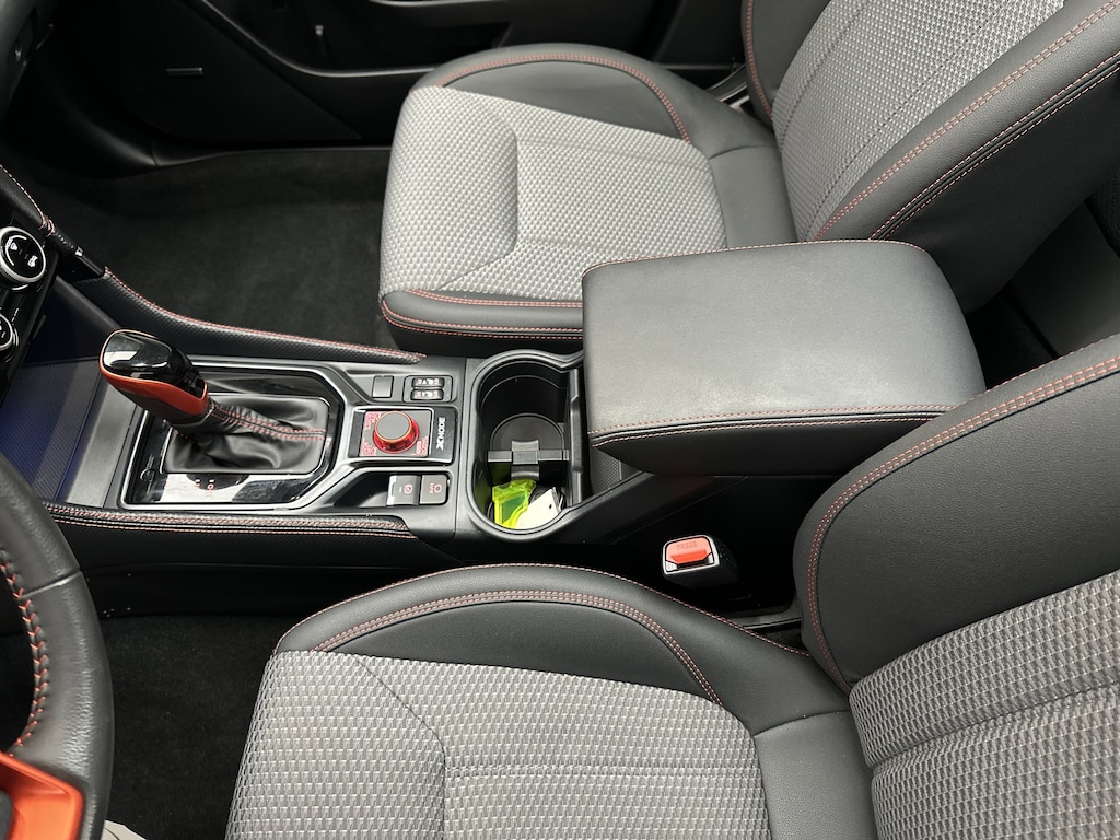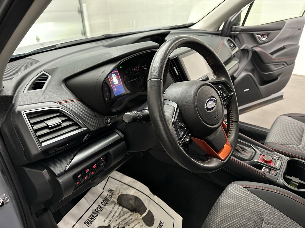 A power rear gate makes loading groceries, sports gear, or camping equipment effortless, and the 60/40 split-folding rear seats open up flexible cargo space in seconds. Roof rails with orange accents are ready for bikes, kayaks, or a cargo box. Smart key access with push-button start means the Forester is ready when you are.